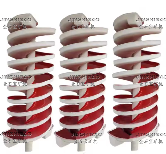 螺旋槽是設備的主體部件由玻璃鋼(或者塑料)制成的螺旋片用螺栓連接而成,本設備具有選別過程穩(wěn)定,容易控制,給礦濃度允許變化范圍大,富集比高,回收率高,占地面積小,耗水量少,結構簡單,無需動力,處理量大,安裝簡易.操作方便,投資小見效快等優(yōu)點。